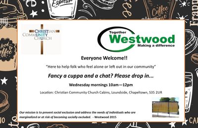 Our church offers a cuppa and a chat' in our cabins every Wednesday morning 10am - 12pm